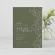Elegante handgezeichnete Illustration der Blume und moderne Schriftzeichen-Details, in dunkelgrün und weiß, einfach und romantisch. Große blumengeschmückte Hochzeitsfeiern für moderne rustikale Hochzeiten, Hochzeiten im Garten und eine einfache Hochzeit im Sommer und Winter. Vollständig anpassbar mit allen Farben, um Ihre Hochzeit Thema. Sehen Sie sich alle passenden Stücke in der Sammlung an.