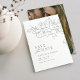 Elegante, handgezeichnete Illustration der Blume und moderne Schrift-Typografie-Details, in dunkelgrün und weiß, mit Paaren Foto auf der Rückseite, einfach und romantisch. Große Blumen speichern die Terminkarten für moderne rustikale Hochzeit, Landgartenhochzeit und einfache Hochzeit im Sommer und Winter. Vollständig anpassbar mit allen Farben, um Ihre Hochzeit Thema.