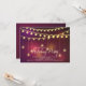 Elegantes WeihnachtsParty Einladungs-Set auf einem lila bokeh Hintergrund, der Weihnachtslichter kennzeichnet u. Sterne hängt. Drehen Sie unser einzigartiges einladen vorbei, um eine zusammenpassende Rückseite für eine spezielle ExtraTouch anzusehen um. Vervollkommnen Sie Ferienzeiteinladung für ein Nachbarschaftstreffen, ein Büro-Party, ein Bürococktail-Party oder ein WeihnachtsParty,