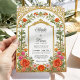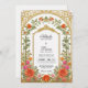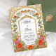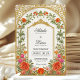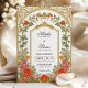 Diese romantische Hochzeitseinladung besticht durch einen Vintag inspiriert goldenen Bogen, der mit farbenfrohen Rose in Orange und Fushia-Rosa mit zarter Vegetation geschmückt ist. Die detaillierte Blumengrenze umrahmt Ihre Namen und Hochzeitsinformationen mit Wärme und Eleganz, während das barocke Bogendesign eine raffinierte, zeitlose Touch verleiht. Die weiche, aber feine Farbpalette macht diese Einladung zu einem idealen Ort für Hochzeitsfeiern im Frühling oder im Sommer, besonders für Hochzeiten in Gärten, Anwesen oder im Freien.