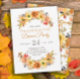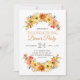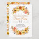 Elegante, rustikale Erntedank Dinner Party Einladung mit gelben und orangefarbenen Herbstlauben und Blumen.