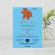Diese elegante Hochzeit im Herbst lädt zu einer modernen Herbsthochzeit ein. Das schlichte Design mit orangefarbenen Herbstlauben und eleganter Schwarz-Orange-Typografie auf himmelblauem Hintergrund