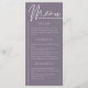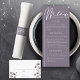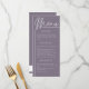 Die Karte ist für das moderne Paar konzipiert, das Eleganz und Einfachheit sucht. Diese wunderschön gestaltete Karte weist einen gepflegten, raffinierten Look mit einem zarten Aquarellmotiv auf der Rückseite auf, mit einem einfachen Monogramm. Platz für drei verschiedene Titels und Text unter für mehr Details über das Menü für Ihren besonderen Tag. Ideal für ein Buffet oder eine Speisekarte. Die zarte botanische Blumenillustrierung in düsteren Grautönen und staubigen lila verleiht ihr ein modernes romantisches Design. Die Blume kann leicht gelöscht werden, wenn Sie ein noch einfacheres Design wünschen. Klicken Sie auf Open Design Tool, um benutzerdefinierte Änderungen vorzunehmen.