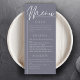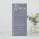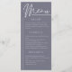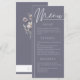 Die Karte ist für das moderne Paar konzipiert, das Eleganz und Einfachheit sucht. Diese wunderschön gestaltete Karte weist einen gepflegten, raffinierten Look mit einem zarten Aquarellmotiv auf der Rückseite auf, mit einem einfachen Monogramm. Platz für drei verschiedene Titels und Text unter für mehr Details über das Menü für Ihren besonderen Tag. Ideal für ein Buffet oder eine Speisekarte. Die zarte botanische Blumenillustrierung in düsteren Grautönen und staubigen lila verleiht ihr ein modernes romantisches Design. Die Blume kann leicht gelöscht werden, wenn Sie ein noch einfacheres Design wünschen. Klicken Sie auf Open Design Tool, um benutzerdefinierte Änderungen vorzunehmen.