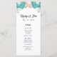 Das elegante Blumenmenü mit blauen, blauen Blume eignet sich hervorragend für Hochzeitsgäste. Personalisieren Sie es mit Ihren Informationen.