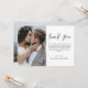 Minimalistische Hochzeit Dankeschön Karten, die ein Foto auf der Vorder- und Rückseite haben. Die Dankeschön-Karten enthalten eine moderne, handgeschriebene, kursive Schriftzeichen-Typografie, die elegant, einfach und modern nach Ihrer Hochzeitsfeier zu benutzen sind.
