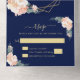 Auf der Suche nach einer großartigen Möglichkeit, Ihre Hochzeitseinladungen und RSVPs auf einer Karte zusammenzubringen. Nun, los geht's! Diese Karte hat Ihre Hochzeitseinladung und ist leicht zu zerreißen Antwortkarte gedruckt, sodass der Gast die Karte einfach ausfüllen und zurückgeben kann. Ihre Adresse befindet sich bereits auf der RSVP-Karte, was es für Ihren Gast erstaunlich einfach macht. Dieses Design besticht durch elegante Pfannkugeln und Rose in den Farbtönen von Pfirsich und Creme, die in den Imitaten Goldfolie umrissen sind, sowie durch die angesagte Eukalyptus-Blätter-Vegetation, die von einem geometrischen Rahmen der Goldfolie aus Imitat auf einem eleganten marineblauen Hintergrund umgeben ist. Die Klappe auf der Kartenrückseite trägt Ihre Rücksendeadresse auch auf marineblau Hintergrund. Der gesamte Text ist mit den bereitgestellten Vorlagen leicht personalisiert. Wenn Sie eine Designfrage haben oder dieses Design auf einem anderen Produkt sehen möchten, kontaktieren Sie mich bitte unter jschmidtdesignworks@gmail.com. Design © Judith Schmidt.