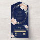 Elegante Hochzeit der Blauen Blüte Gold Peach Flor All In One Einladung