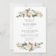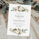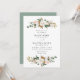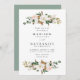 Elegante blumengeschmückte Hochzeitsfeiern mit Ihren Hochzeitsdetails, die durch eine obere und untere Grenze von Aquarellmagnolien, rot-rosa Blume, grünes und braunes Blattwerk und Baumwollblüten hervorgehoben werden. Die rustikalen blumengeschmückten Einladungen sind perfekt für den Frühling, den Sommer oder die Hochzeit im Herbst.