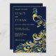 Elegante Hochzeit in Blue und Gold Peacock Einladu Einladung