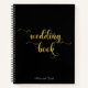 Elegantes und einfaches schwarzes Hochzeitsnotebook mit Goldschrift. Personalisierbar.