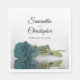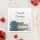 Diese wunderschönen Servietten werden Ihren Empfang, Ihr Probe-Dinner oder andere Hochzeitsveranstaltungen mit Stil und Klasse bereichern. Sie zeichnen sich durch ein schlichtes, elegantes und romantisches Design aus. Ein Single mit aquamariner oder türkisfarbener Rose, der sich in einem Wasserbecken mit Wellen und Wellen widerspiegelt. Über der Rose sind die Namen des Ehepaares und des Hochzeitstages.