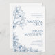 Eine zeitlose und elegante Hochzeitseinladung mit zartem blauen, von Hand gezeichnet Blumendesign, perfekt für formale, rustikale Hochzeiten, Gartenfeiern oder Hochzeiten im Sommer. Mit minimalistischem Layout und sanften botanischen Details verbindet diese Einladung Einfachheit und Eleganz und schafft so einen unvergesslichen ersten Eindruck für Ihren besonderen Tag.