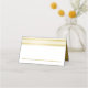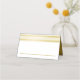 Diese elegante Platzkarte ist mit goldfarbenen Akzenten auf weißem Hintergrund gestaltet. Auf der Rückseite dieser Faltkarte befindet sich ein goldfarbener Hintergrund, der mit dem vorderen Trimm übereinstimmt. Auf beiden Seiten ist eine goldene Linie angebracht, um den Namen des Gastes einzufügen.