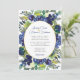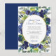 Elegante Navy & White Watercolor Rose Blumenrahmen Hochzeitskarte.
