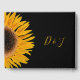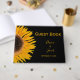 Elegantes Hochzeitsgelb rustikale Landsonnenblume auf schwarzem Hintergrund Empfang Gästebuch für Braut und Bräutigam. Schönes, elegantes, schlichtes Blume Print Design. Bildrecht Marg Seregelyi Fotografie.