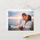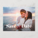 Eine elegante Foto-Hochzeit speichert das Datumskartendesign mit bearbeitbarem Text und weißen Schriftzeichen. Fühlen Sie sich frei, um das Bild und den Text zu personalisieren.