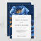 Elegant Navy Blue Gold Floral Wedding Einladung