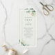 Dieses wunderschön gestaltete Hochzeitsprogramm besticht durch ein edles botanisches Motiv mit zarten Blüten und Weiß und üppigem Grün, Set vor einem sanften, blassgrünen Hintergrund. Das übersichtliche Layout präsentiert Ihre Hochzeitsfeier und Zeremonie in einem leicht lesbaren, modernen Serifenrahmen, der von einem subtilen, feinen Rahmen gesäumt wird. Die Akzente der Blume im Aquarellstil in jeder Ecke tragen zu einer romantischen, natürlichen Touch bei, die sich perfekt für Hochzeiten im Garten, im Frühling oder im Freien eignet. Die Vorderseite zeigt die Namen des Paares, zusammen mit einer detaillierten Zeremonie. Die Rückseite listet die vollständige Hochzeitsfeier, einschließlich Beamter, Eltern, Trauzeugin, Trauzeuge, Brautmädchen, Trauzeugen, Blume Mädchen und Ringträger. Diese Vorlage ist vollständig für Ihre eigenen Namen und Details anpassbar. Ideal für Paare, die eine frische, elegante und naturlich inspirierte Aussicht auf ihre Hochzeitsstätte suchen.