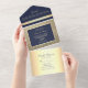 Elegante Hochzeit von Marine und Gold All In One Einladung