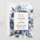 Dieses atemberaubende Design besticht durch einen marineblau-blauen Hintergrund, der mit zarten Elfenbeinfloralen geschmückt ist und mit glänzenden silbernen Details besticht. Diese Einladung, die perfekt für eine anspruchsvolle und zeitlose Hochzeit ist, vereint das Wesen von Eleganz und Raffinesse und setzt den perfekten Ton für Ihren besonderen Tag. Ideal für Paare, die eine klassische und luxuriöse Einladung suchen, die Charme und Anmut ausstrahlt.