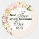 Elegante Hochzeit ZWEI WIRD EINE Bibel Blumengrenz Runder Aufkleber