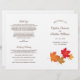 Das Design des Veranstaltungsprogramms für die Herbstfeier mit Elfenbeinhintergrund bietet lebendiges Herbstfolien in Gelb, Gold, Orange, Kupfer und Rot. Personalisieren Sie den Schokoladenbraun-Text für Ihr Brautparty, Zeremonie Informationen, und danken Sie Ihnen Nachricht. Hinweis: Diese Textgewichtspapierprogramme kommen flach an und müssen zum Zusammenbauen zusammengelegt werden.