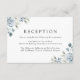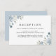 Elegante florale Hochzeitskarte mit ihren Details an der Hochzeitsfeier mit dustig blauen und weißen Rosen, Hydrangeas, üppigen Eukalyptus-Blätter und Grünpflanzen. Die staubigen Blumenkarten sind perfekt für Ihre Hochzeit im Frühjahr oder Sommer. Entworfen, um mit unserer eleganten Dusty Floral Hochzeitskollektion zu koordinieren.