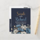 Elegante Hochzeitsfeier in Blauer Flora Postkarte