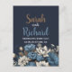 Entdecken Sie eine anspruchsvolle marineblaue Hochzeitsreise mit eleganter Kalligraphie und Vintag inspirierten Blumendesigns. Diese zweiseitige Einladung zeigt die Namen des Paares in einem schönen Skript, detaillierten Veranstaltungsinformationen und einem QR-Code für eine einfache UAWG. Ideal für eine romantische Herbsthochzeit im Whispering Pines Wedding Anwesen. #NavyWeddingInvite #VintageFloral #ElegantCalligraphy #AutumnWedding #CustomInvitation