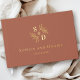 Elegantes Gästebuch mit den Blätter der Braut und des Bräutigams, Monografie und Grün, und den Namen darunter, in echter Folie. Im Designwerkzeug kann die Terrakotta-braune Hintergrundfarbe geändert werden.