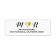 Ein personalisiertes und elegantes return_address_label mit dem Bild eines Imitats goldenes Herz zwischen zwei Hauptstädte Buchstaben (handgeschriebener Schriftart Stil). Personalisieren Sie es mit Ehefrau und Ehemannsinitialen und Ort.. für Ihre Hochzeitsmailings.