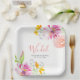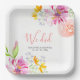 Die Teller sind mit Aquarellfarben-Blume in Rosa-, Pfirsich-, Orange- und Lavendeltönen gestaltet. Die Worte "Wir haben" sind Set in der modernen Schriftzeichen-Typografie. Eine botanische Wahl für Hochzeiten, ein Probe-Dinner oder ein elopiertes Party. Weitere Designs wie diesen besuchen www.zazzle.com/dotellabelle Einzigartige Aquarellkunst von Victoria Grigaliunas von Do Tell A Belle.