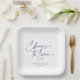 Mit dieser eleganten Einwegpapiertafel mit der Phrase "Cheers to Liebe" in einem stilvollen Script-Schriftart machen Sie Ihre Hochzeitsfeier noch attraktiver. Der weiße Hintergrund mit dunkelblauen Buchstaben schafft ein zeitloses und raffiniertes Design. Personalisiert mit den Namen der Paare und ihrem besonderen Datum ist dieser Teller ideal für Hochzeitsfeiern, Verlobungsfeiern, Brautpartys und Jubiläumsfeiern. Eine wunderschöne und praxisnahe Touch für jede Liebe!