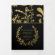 Elegante Hochzeitssuite mit Gold & Black Floral Wr Dreifach Gefaltete Einladung