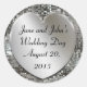 Einfach auf diesen eleganten silbernen Metallaufklebern mit einem 3D-Look-Herz auf dem glänzenden Hintergrund der silbernen Sequin den eigenen Text wechseln. Die Show ist "Jane and John's Wedding Day" mit dem Datum in elegantem Skript. Wechseln Sie zu Ihren individuellen Namen und gehen Sie einfach mit dem Datum. Auch schön für Party, besondere Anlässe und große Events wie ein silbernes 25-jähriges Jubiläum.