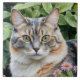 Genießen Sie den Stilstil auf einer Keramik! Dieses niedliche Kätzchen ist eine verdünnte Schildkrötenhölle, mit schönen grünen Augen, in einem Garten mit rosa Blume abgebildet. Die elegante Kachel ist ein stilvoller Gesprächspunkt im Zuhause und ein ideales Geschenk für Katzenliebhaber.