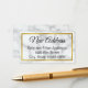 Dieses Imitat weiß Marmor Änderung der Adresse einfügen kann mit Ihrem gewünschten Text personalisiert werden. Oben befindet sich ein elegantes schwarzes Skript (angezeigt: Neue Adresse). Dann gibt es drei Zeilen schwarzen Bildschirmtext für Ihren Namen und Ihre Adresse. Der goldene Aussehrahmen besteht nicht aus Folie.