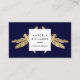 Ein elegantes und unerwartetes Paar Imitate goldene Libellen ragen hinter einer stilisierten Box heraus, die Ihren Namen oder Firmennamen auf dieser dunkelmarineblauen Visitenkarte enthält. Diese doppelseitige Karte ermöglicht es Ihrer Marke, auf der Vorderseite der Karte zu beachten, während genügend Platz für Ihre Kontaktinformationen auf der Rückseite vorhanden ist. Eine schöne Designerkarte, die sich perfekt für stilvolle Berufe wie Innenarchitekten, Stylist, Lifestyle Blogger, Gartendesigner, Kosmetologen und vieles mehr eignet. © 1201AM Design Studio