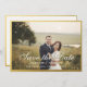 Feiern Sie Ihre Verlobung mit diesem eleganten Imitat Gold Save the Date Karte. Vollständig anpassbar - laden Sie Ihr Foto hoch und ändern Sie den Text auf der Vorderseite und zurück auf Ihren Anzug. Auf beiden Seiten finden Sie eine wunderschöne Imitat mit goldenem und weißem Schriftzeichen. Trendy und stilvoll, aber einfach und zeitlos - eine Save the Date Karte, die sich wunderbar mit den meisten heutigen Hochzeitstilen und -themen abstimmt.