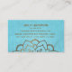 Dieses grafische Overlay - eine schöne, elegante Mandala - wurde mit einem glatten Imitat Goldfolieneffekt geschmückt und dann auf einen aquamarinischen Hintergrund gestellt. Diese Farbe ist bearbeitbar und kann auf jede Farbe geändert werden, die Sie bevorzugen. Beklemmende, grungy, rustikale Texturen wurden über den Hintergrund gesetzt, um zusätzliche Wirkung zu erzielen. Alle Ebenen wurden getrennt hinzugefügt, um Ihnen so viel Kontrolle wie Sie möchten zu geben; sie können sich bewegen und verändern, wenn Sie es für richtig halten. Verwenden Sie die Vorlagenfelder zum Hinzufügen Ihrer persönlichen Daten. Ideal für Massagetherapeuten, Yogalehrer, Heilkunstler, Salonbesitzer und -personal, sowie für alle, die in vielen anderen progressiven Bereichen arbeiten. // Designed by Melody Watson for Paper Muserie.
