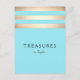 Elegantes, stilvolles Design der Visitenkarte mit drei Streifen in goldfarbenem IMITAT auf aquablau.