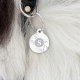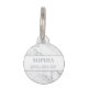 Desteis elegante Imitate mit weißer Marmortextur und einem grauen Kreis mit einem personalisierbaren Monogramm-Initial. Auf der Rückseite befinden sich zwei personalisierbare Textbereiche, die für den Namen des Tieres und für die Telefonnummer des Besitzers bestimmt sind. HINWEIS: DAS DESIGN IST EIN DIGITALES BILD, DAS AUF DEM PRODUKT DRUCKT WIRD.