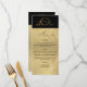 Elegante Schwarz-Imitat Goldfolie Hochzeit Dinner Empfang Menü Karte mit exquisiten handgezeichneten Monogramm in Imitate Gold Folie. Design mit einem schwarzen Rand, der das Monogramm in goldener Imitat-Folie zeigt. Untere Sektion in einem schönen Imitat Gold-Hintergrund Druck und Text in schwarz. Moderne handgeschriebene Kalligrafiedetails. Teil unserer "Black and Gold Monogram Wedding Collection" mit einer Vielzahl von koordinierenden Produkten. Die gesamte Sammlung finden Sie unter: https://www.zazzle.com/collections/black_and_gold_monogram_wedding_collection-119092477004367833