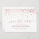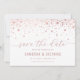 Laden Sie Ihre Familie und Freunde zu Ihrer Hochzeit mit diesem eleganten, anpassbaren Ankündigung Datum freihalten ein. Es zeigt Imitate Rose Goldfolie Konfetti Punkte, elegante Drehbuch und einfache Typografie. Personalisieren Sie diese moderne Save the Date-Karte, indem Sie Namen, Datum und andere Details hinzufügen. Diese Imitate rosa Folie Save the Date ist perfekt für jede Hochzeitsreise oder Jahreszeit.