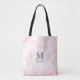 Auf dieser Tasche befindet sich ein elegantes Imitat mit rosa Marmorstruktur. In der Mitte der Tasche können Sie es mit Ihrem Monogramm und Namen in grauem Text personalisieren.