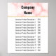 Diese elegante Preisliste besticht durch ein Imitat in rosa Marmor. Es gibt auch schwarzen Text für den Firmennamen oben. Am unteren Rand sehen Sie den Text für Ihre Produkte (oder Dienstleistungen) und deren Preise.