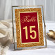 Elegante Tischnummer-Karte mit einem Imitat Goldfolie-Rahmen und einem schönen Imitat Gold Glitzer Hintergrund.