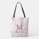 Ein elegantes Imitat rosa Marmor Tote Tasche hat grau Text können Sie durch Ihre Monogramm und Name ersetzen. Der große graue Initial befindet sich in der Mitte. Der Text für den Namen ist unter dem großen Buchstaben.