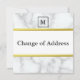 Müssen Sie eine bewegende Ankündigung machen? Ein weißer Marmor Texturhintergrund kann mit dem Monogramm, dem Namen und der neuen Adresse angepasst werden. Oben ist ein Quadrat für Ihr Monogramm. Auf der Vorderseite gibt es anpassbaren schwarzen Text (angezeigt:"Adressänderung"). Auf der Rückseite ist ein weißer Hintergrund für Ihren Namen und Ihre neue Adresse.